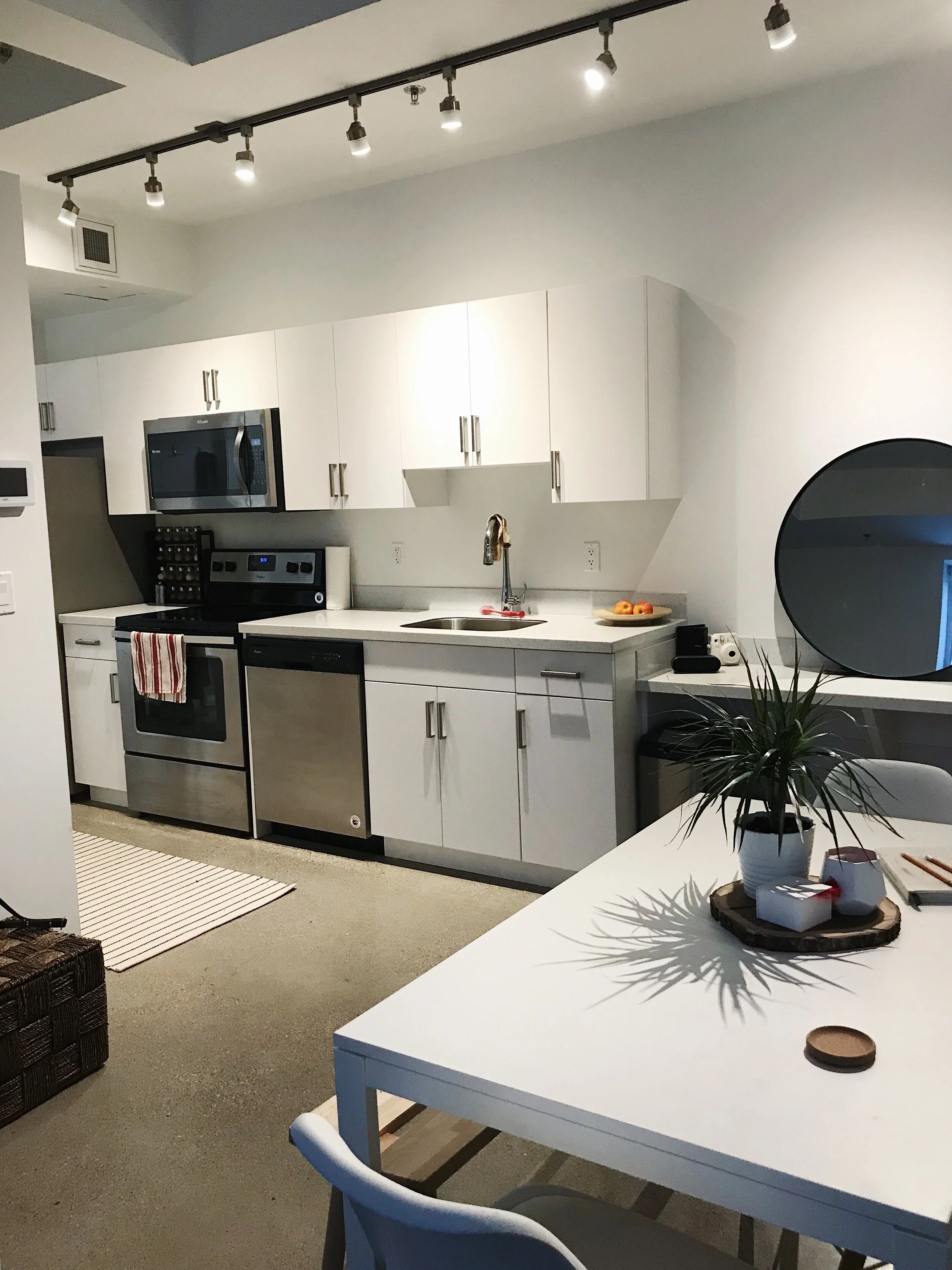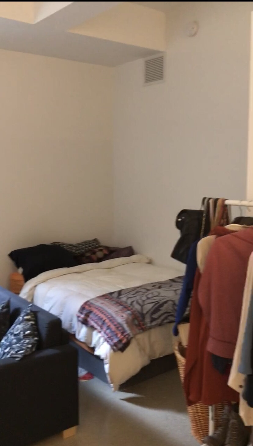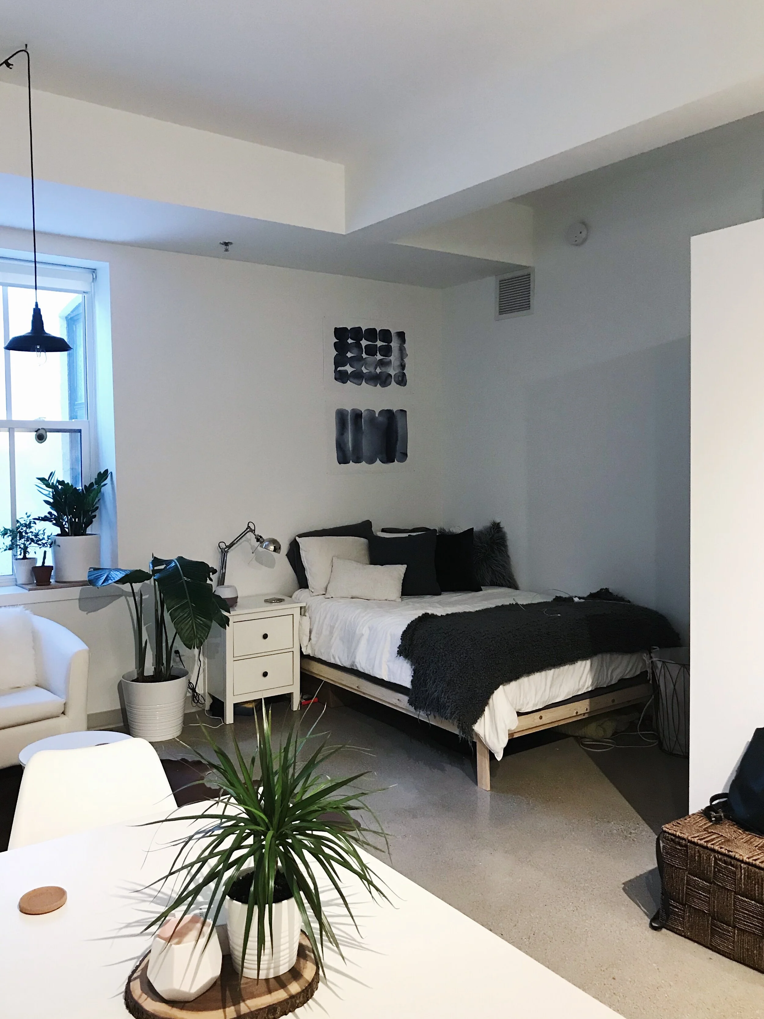 This was one of hopes smaller scale projects here she reworked the space of a studio apartment of 300 sq ft to make it feel much more organized and homey. Below, you can see the pictures before and the shots after.